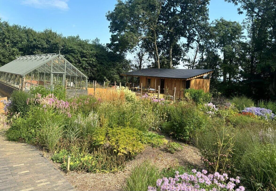 The site includes a bespoke glasshouse from White Cottage, compost heaps, a mess room for Sunnyside staff, trainees and those undertaking horticultural therapy.