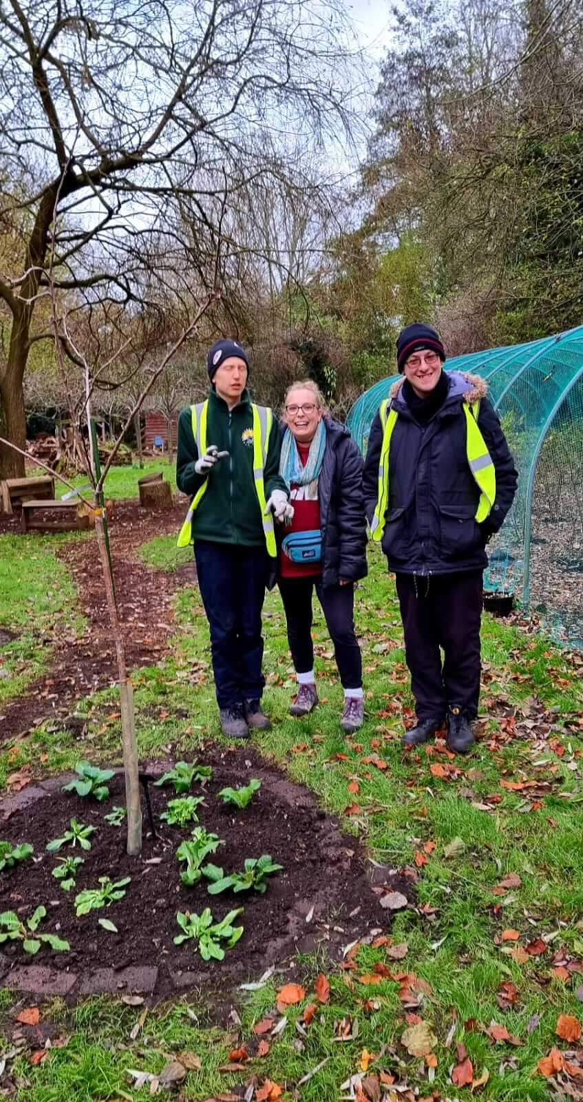 Marc, Hugh and his helper Leanne showing off their hard work in the orchard this week.