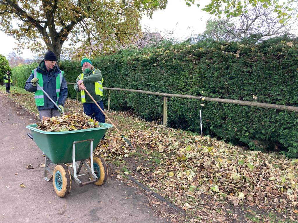 Other team members continued around the site – the leaf mould pile must be enormous! Good for the allotments though.
