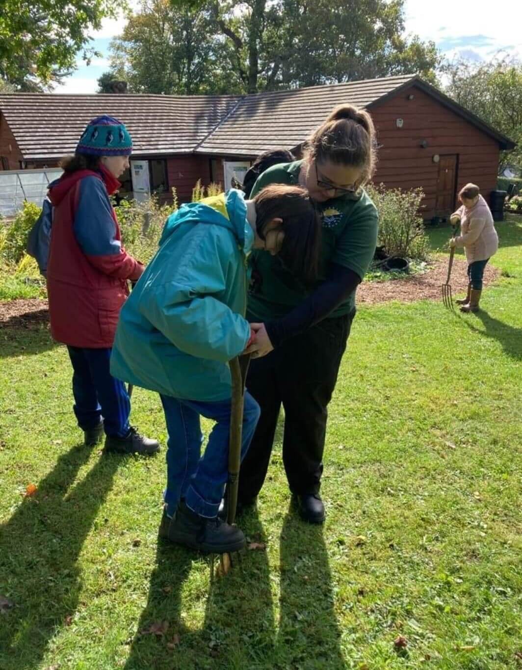 This week the big job tackled by various groups, has been the work on the lawn area, using garden forks to aerate the grass and help with the drainage over winter. That’s why they needed so many forks – all hands to the ‘lawn’.