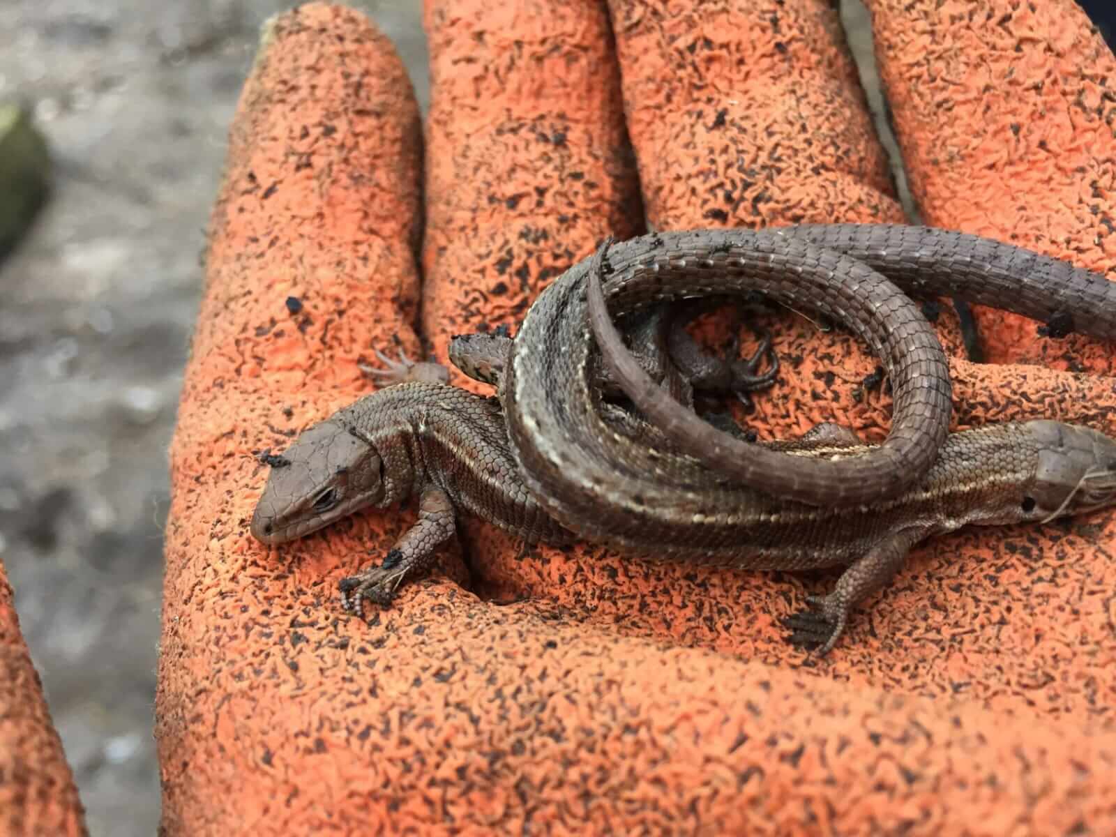 Northchurchs wildlife area has turned up a very….. long….. tailed common lizard. Now safely returned to a cosy mound of soft leaf mould.