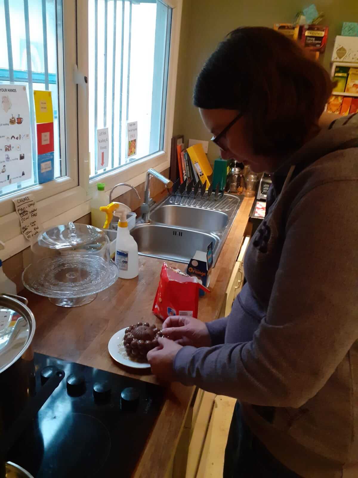 Camilla is getting creative in the kitchen. Covering a chocolate orange with maltesers, a chocolate overload BUT favourites rolled into one.