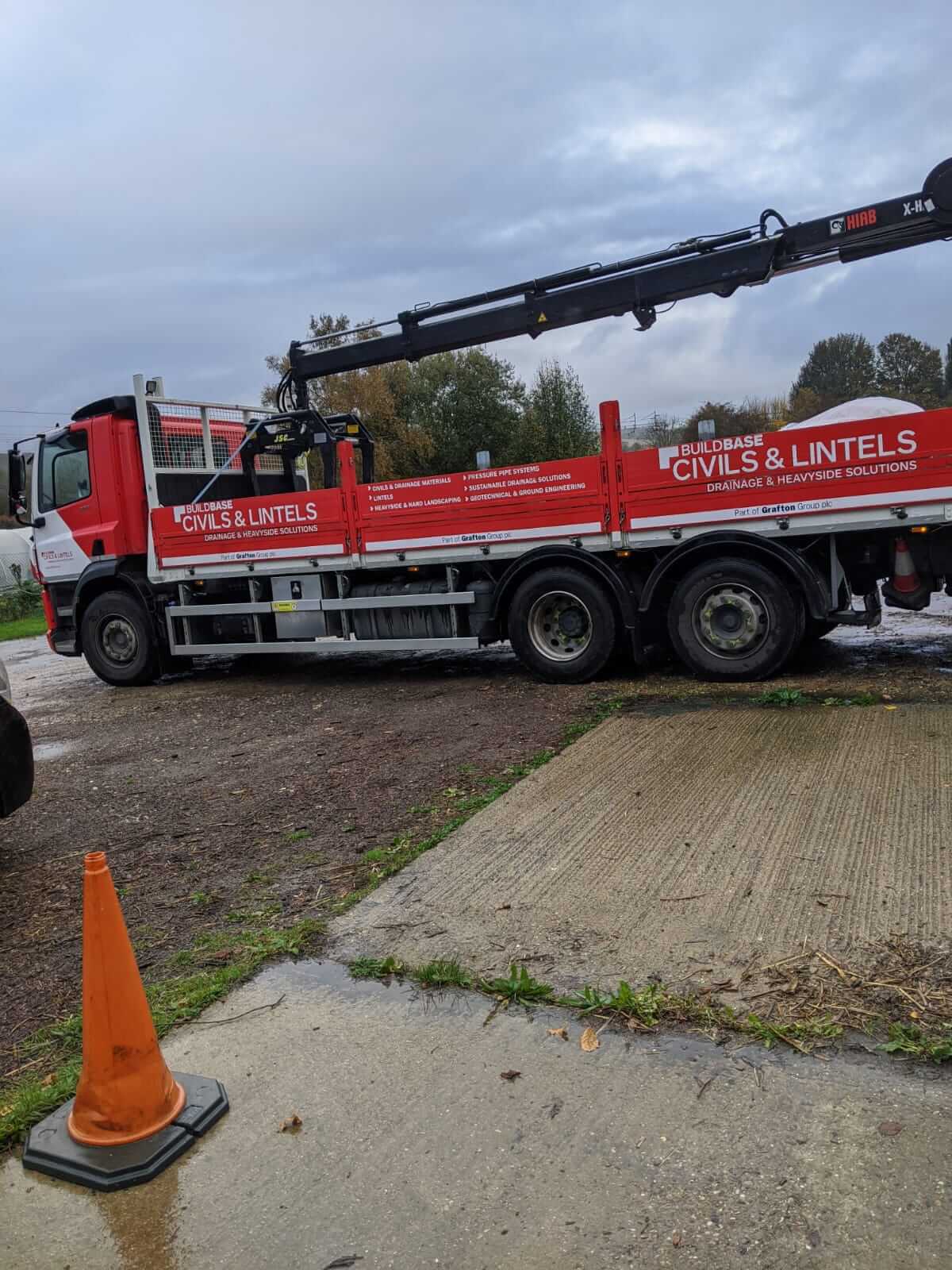 Delivery, craning them off, base layer of sand and then the concrete ready for the slabs to be laid.