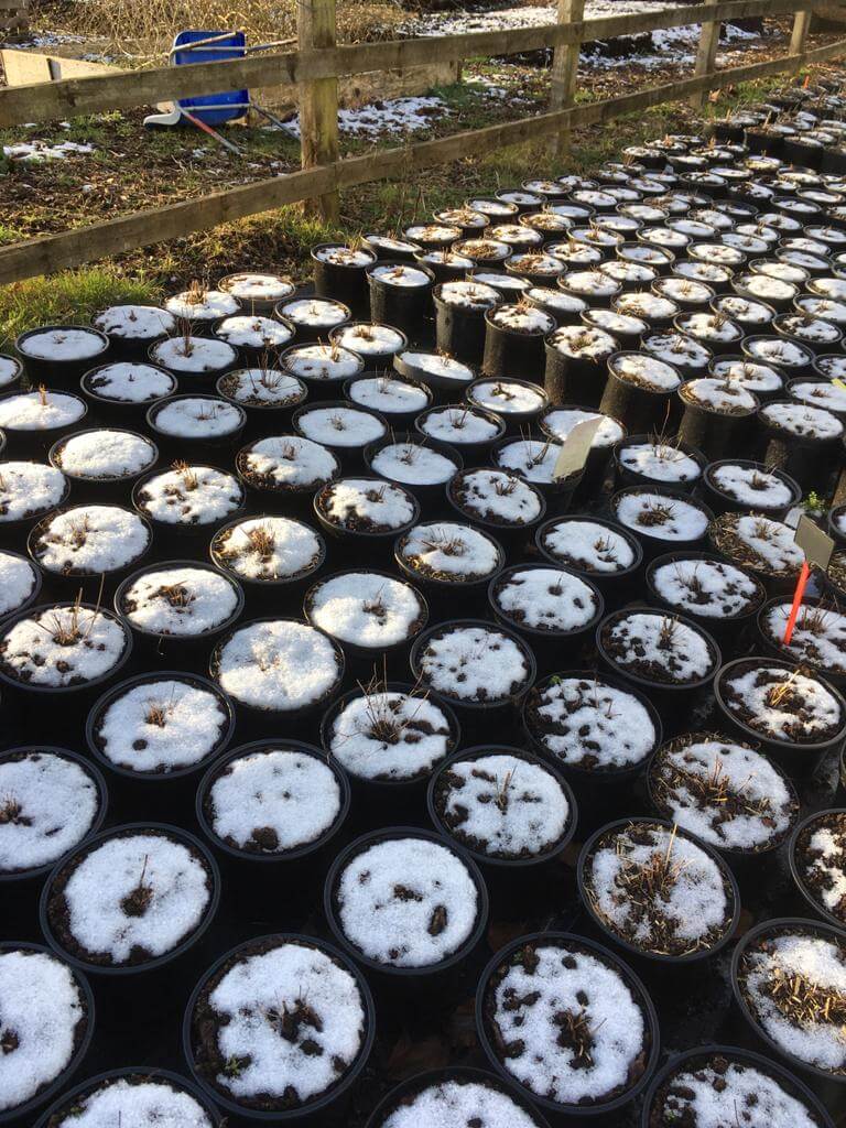 Bit of a cold snowy theme still this week at all the sites. Jules at Hemel Food Garden was a bit concerned about the predicted drop in temperature, particularly overnight so the outside perennial plants were wrapped in blankets!