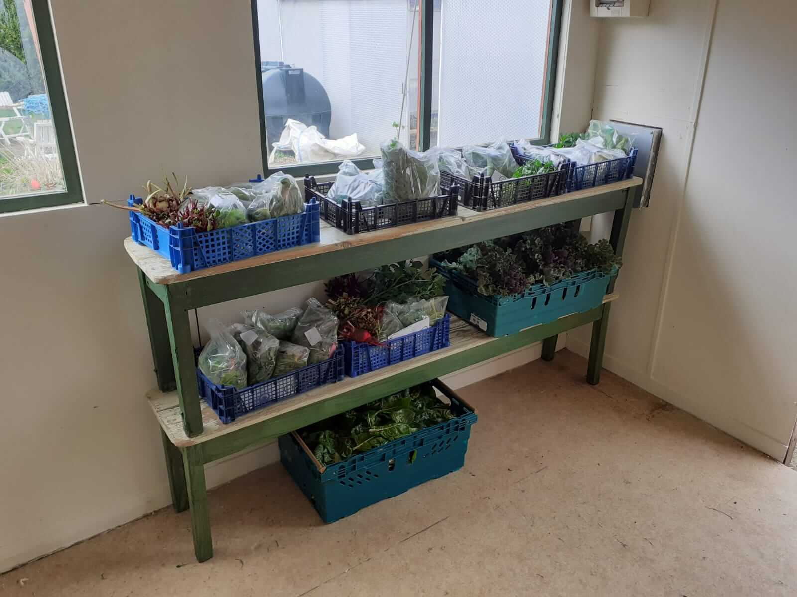 The veg box scheme started up again this week with the teams harvesting lots of fresh greens including kale, mixed cabbage greens, chard & spinach, plus beetroot. We also have a bounty of herbs – fennel leaves, parsley, rosemary, mint, thyme and chives. These boxes were put together in the newly re-furbished veg prep room and are about to go to the shop ready for customers to collect.