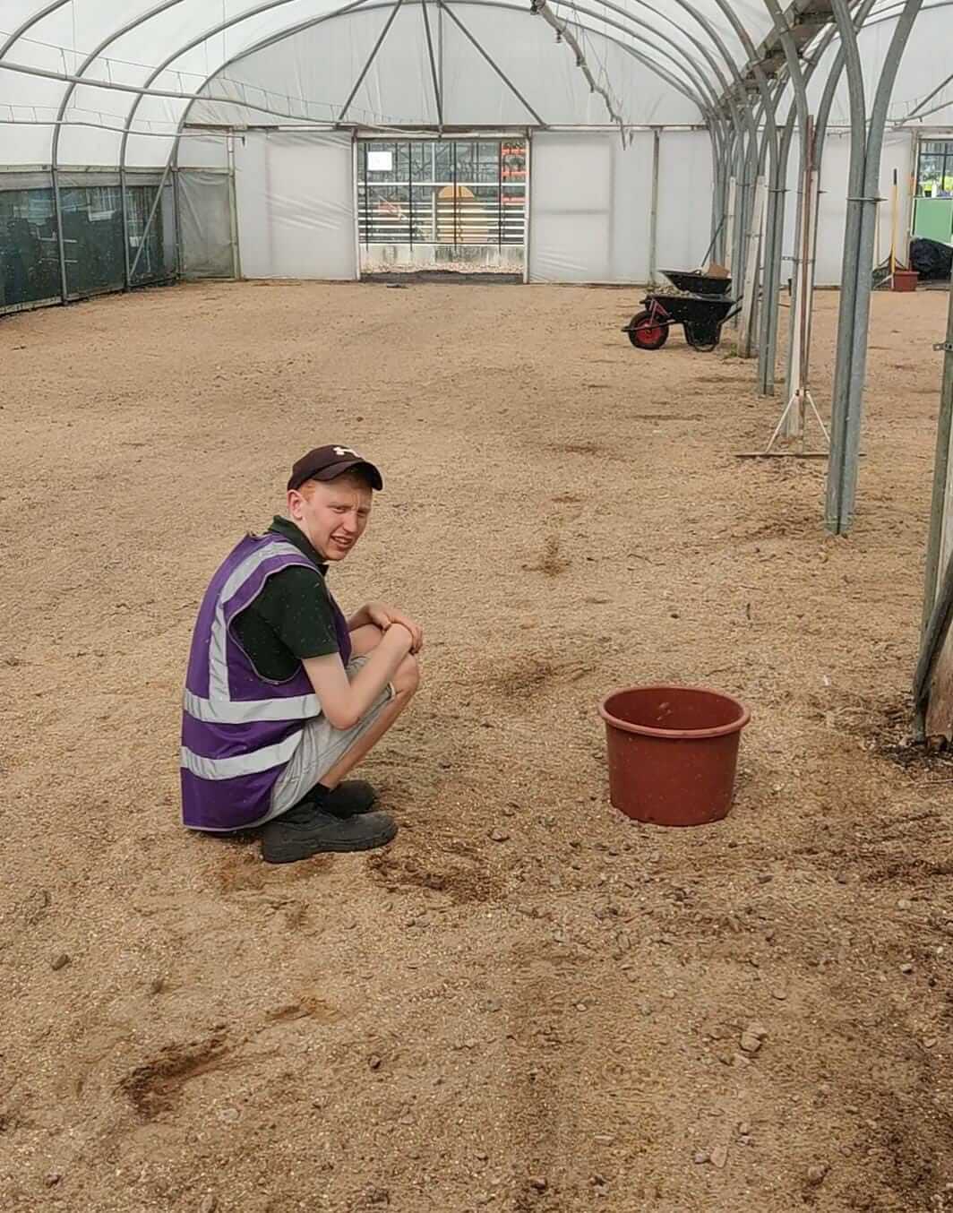 Levelling the sand floor of polytunnels 3 & 4 ready for the new mypex layer to go down for the perennials. It’s almost a beach!
