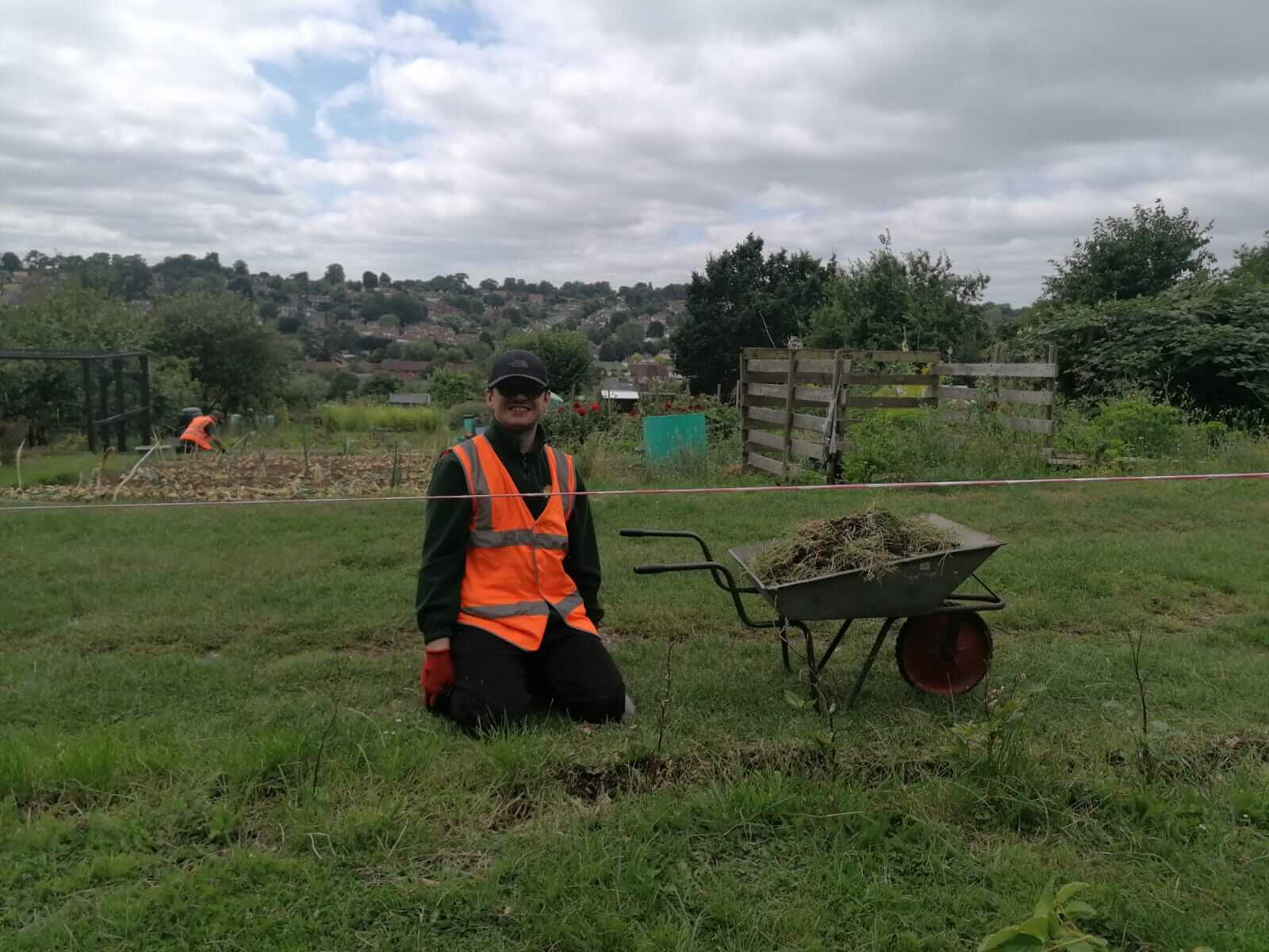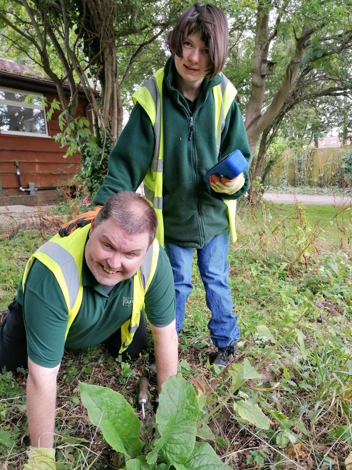 Lewis weeding the new beech hedge.