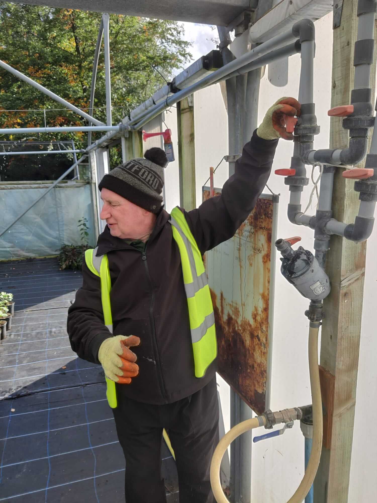 Great team effort using maintenance skills of the yellow team, replacing the sprinkler heads of the overhead irrigation in the polytunnels.