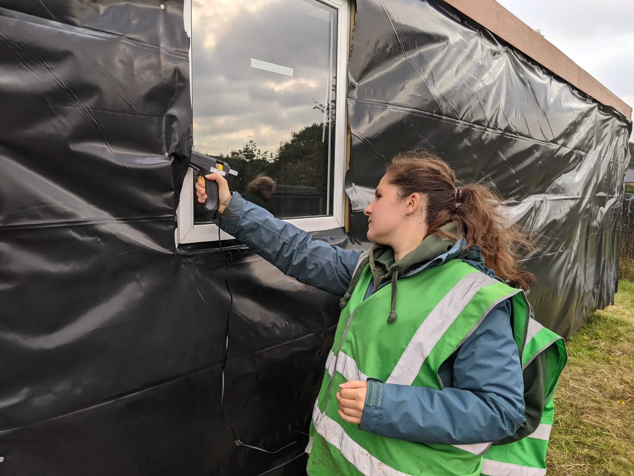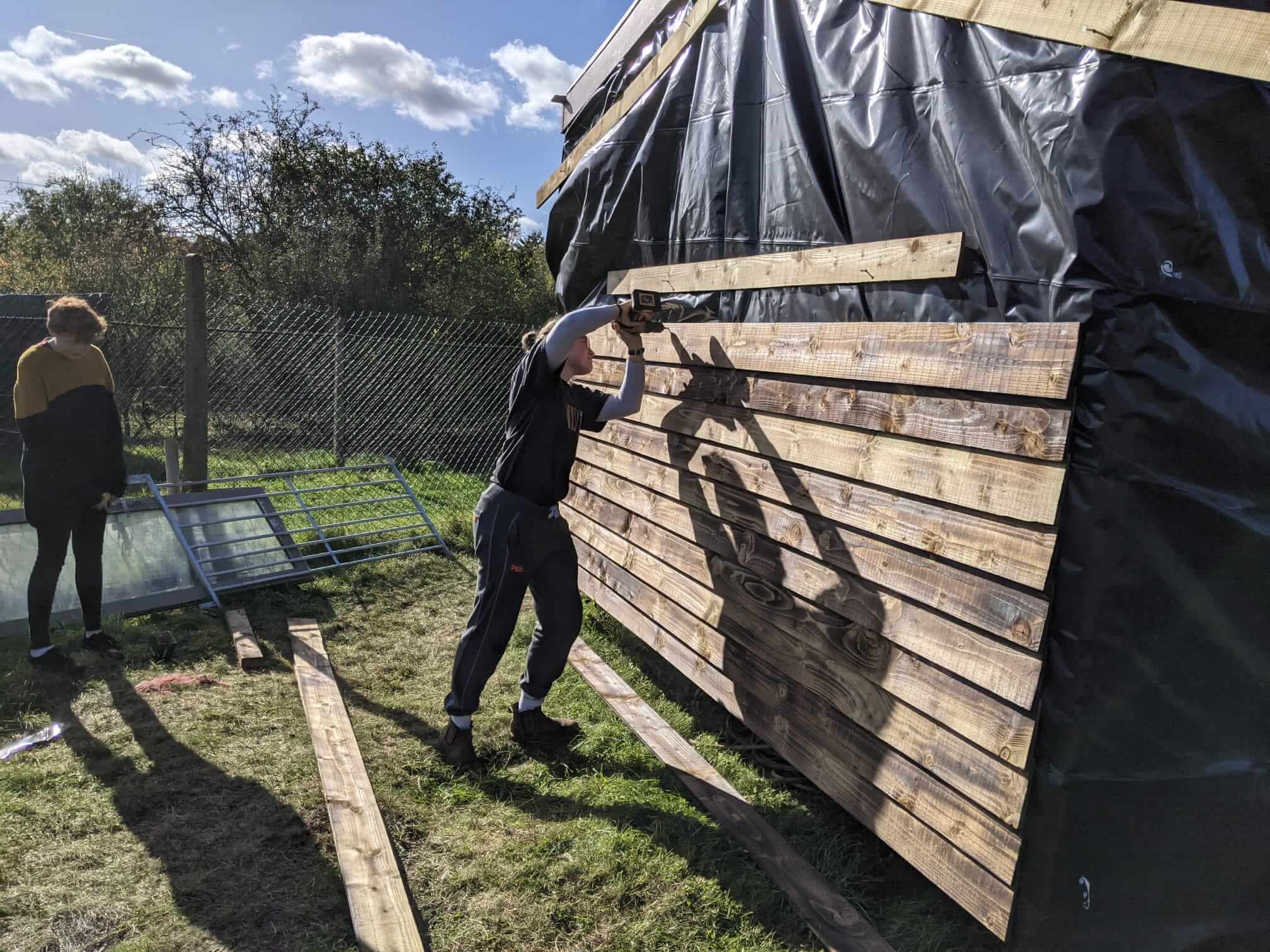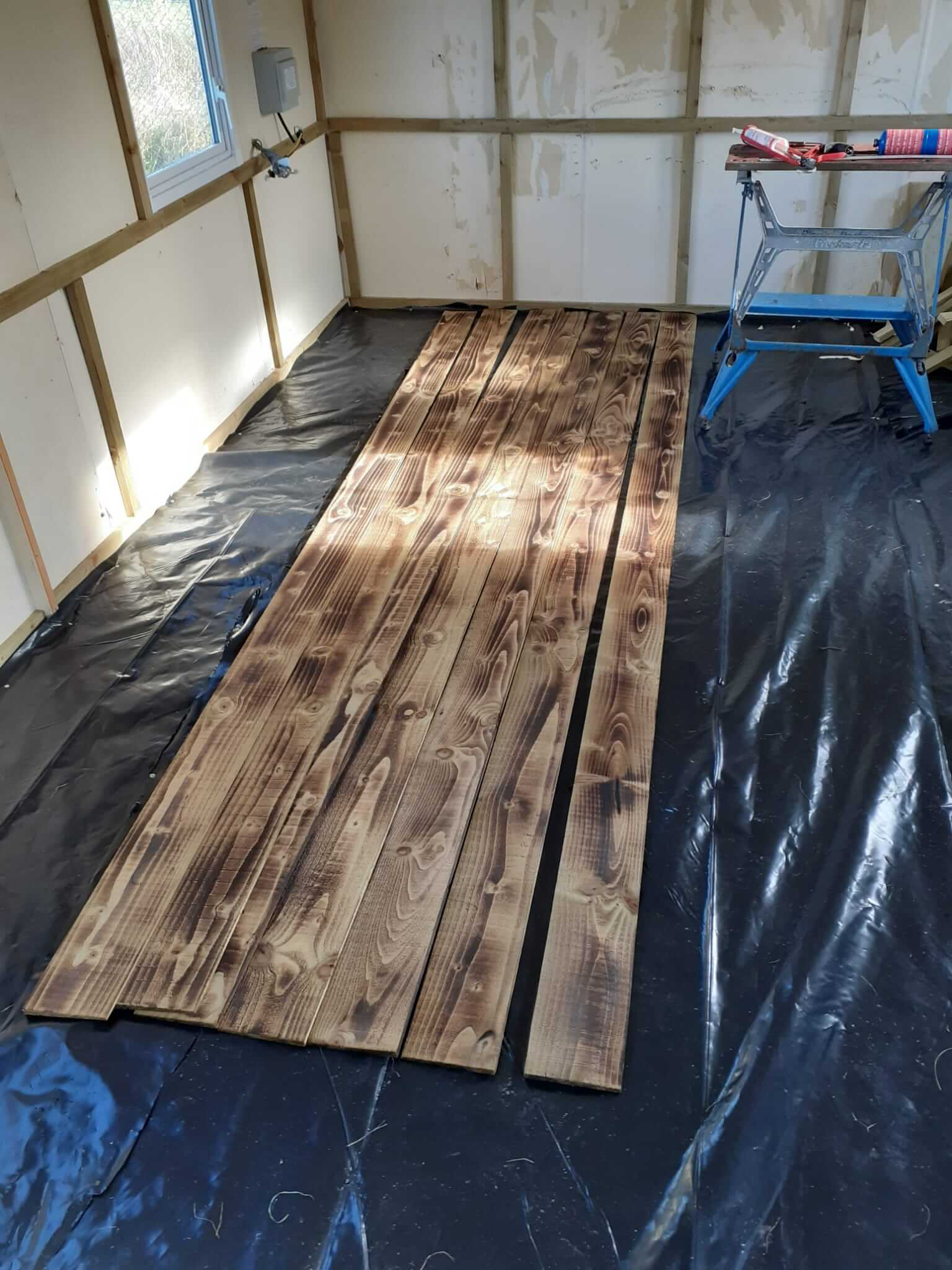 The caravan re-development at Northchurch is progressing…….Damp proofing went up and the windows cut out.