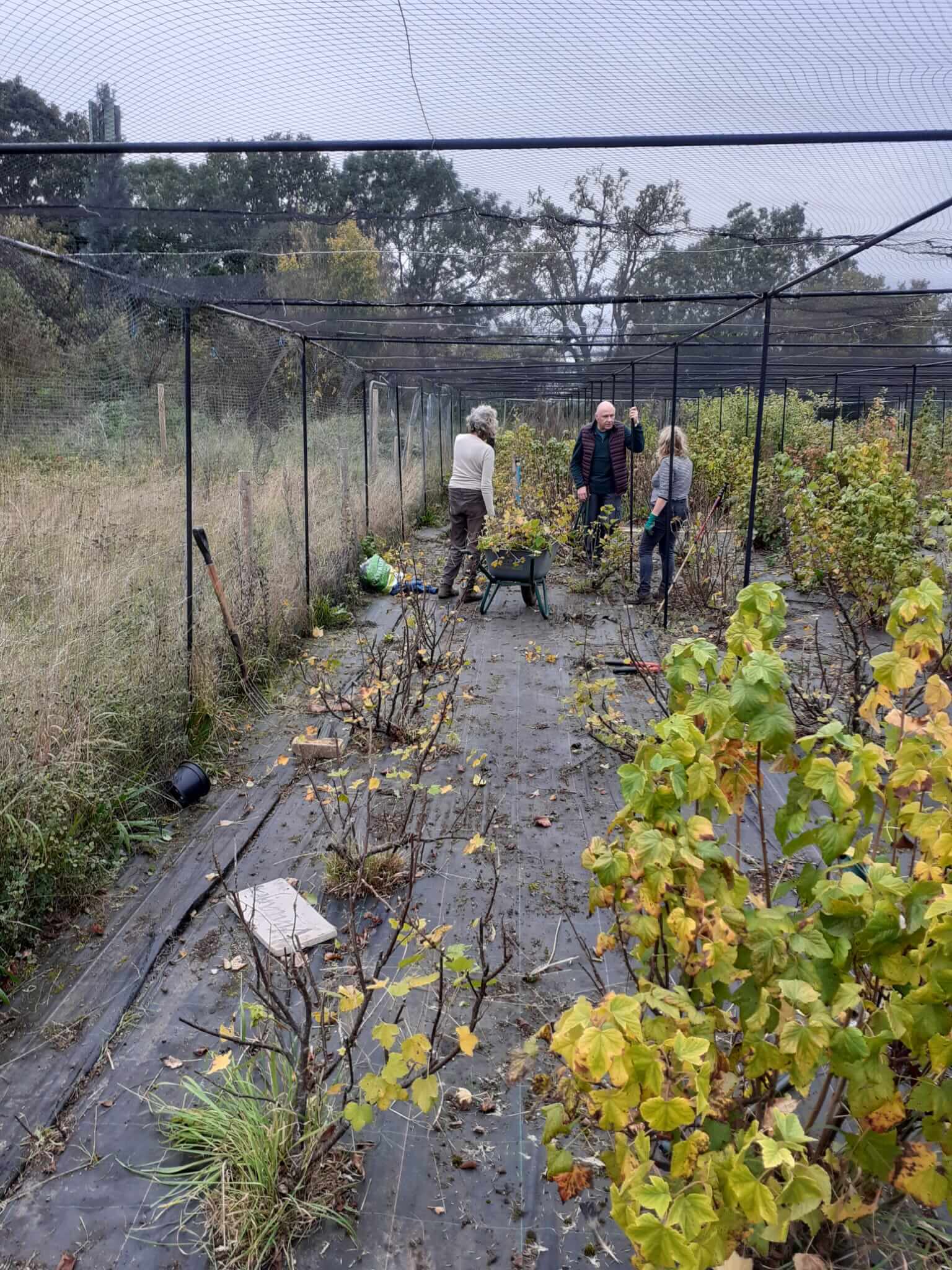 Volunteer group on Tuesday helping up in the fruit cage pruning and making fruit cuttings. It was a great first day and we got lots done. Looking forward to the next one on the 3rd Tuesday of the month