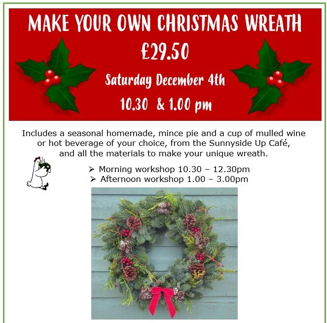 publicity@sunnysideruraltrust.org.uk for these details. There are only 10 spaces per session. 2021 Wreath making workshop A4 poster
