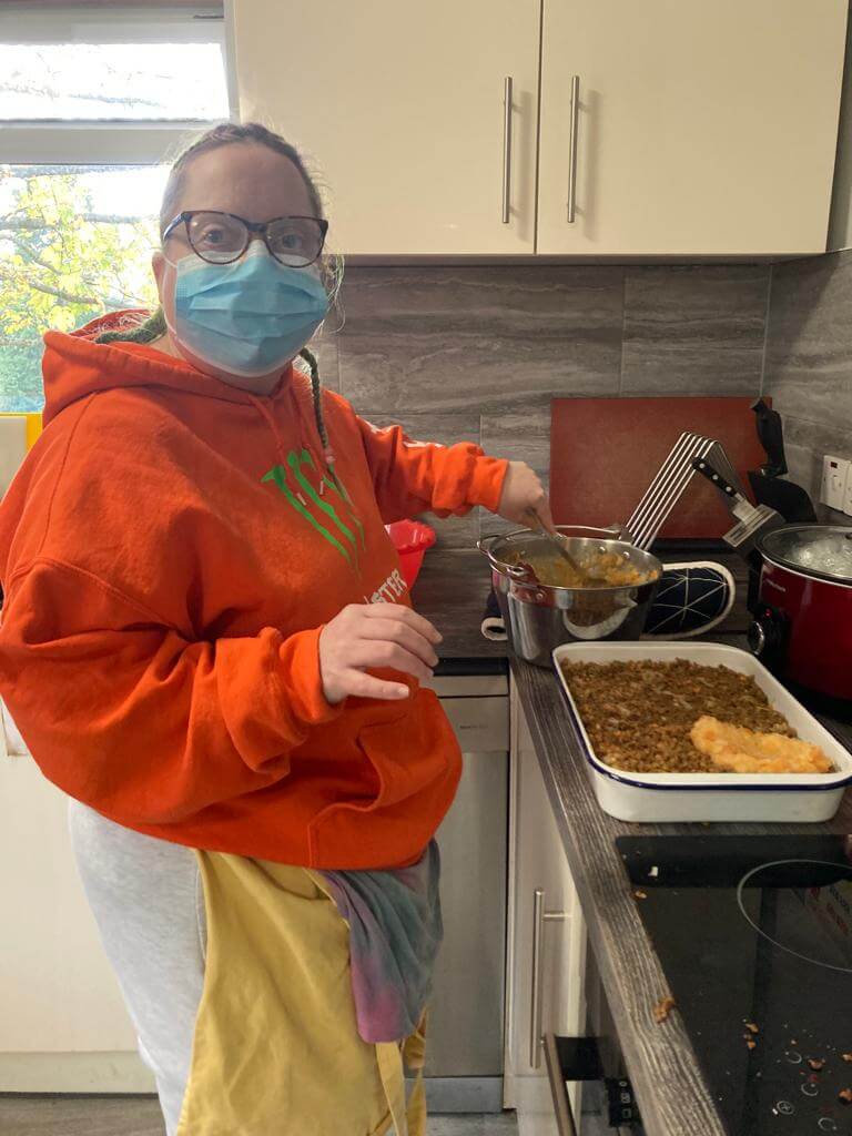 Roxy making lunch for everyone on their return.