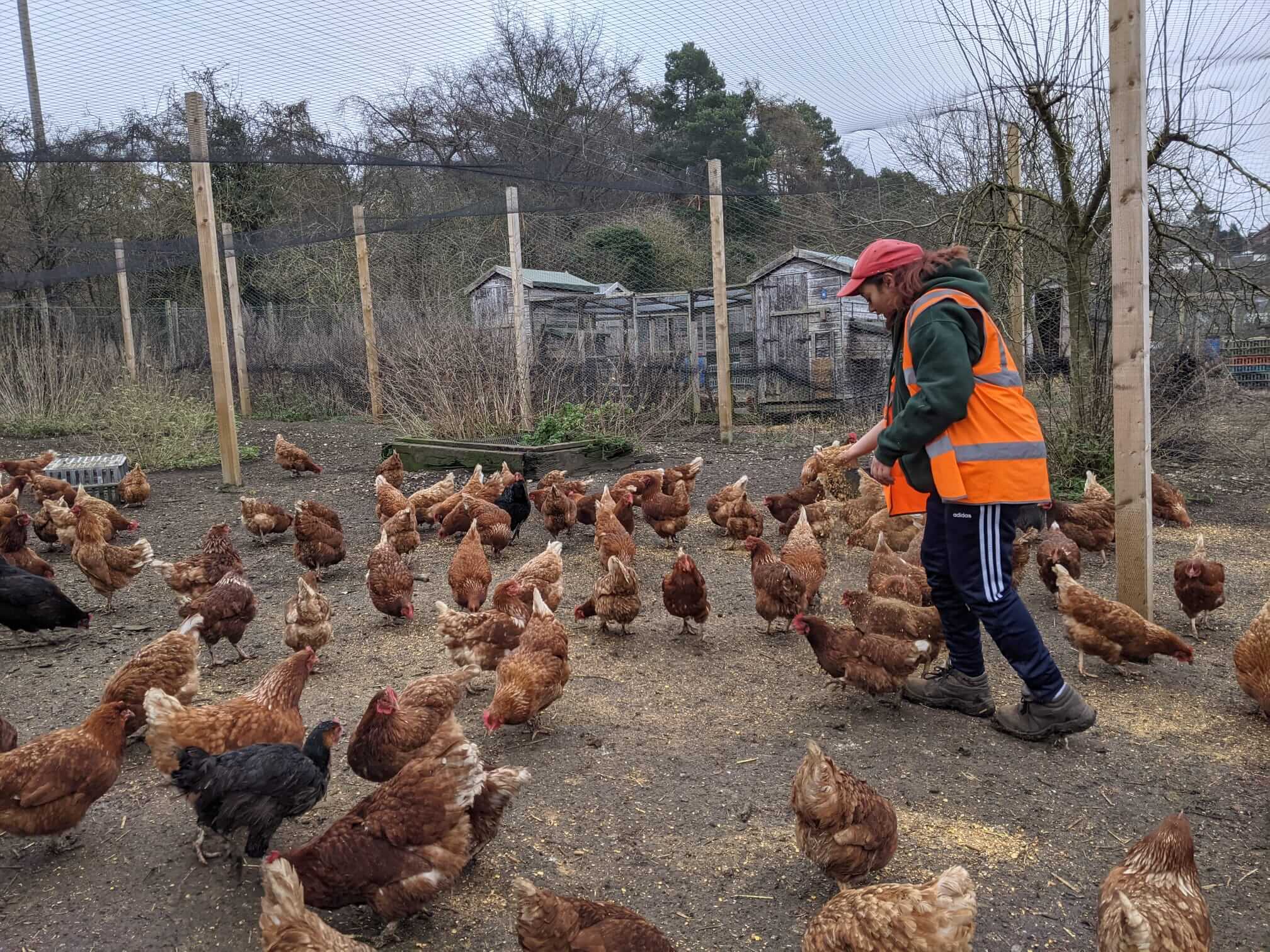 Charlie in with the chickens clearing them out. Lots to clear out on Mondays as they have been pooing all weekend.