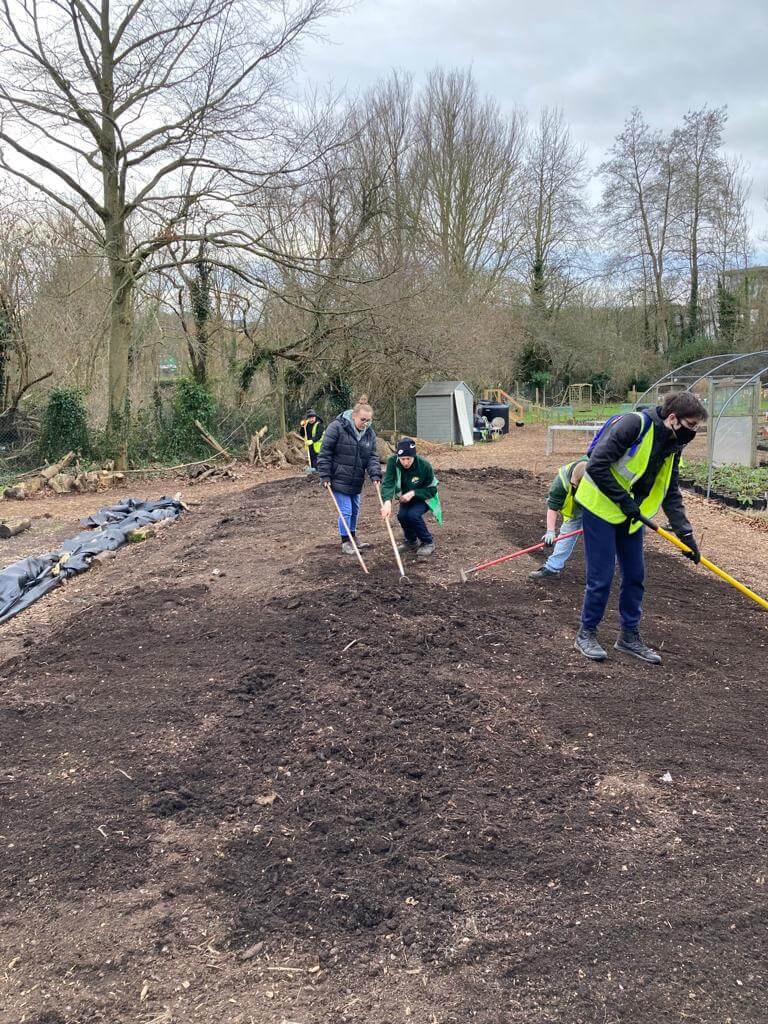 The West Herts College staff & team were over using the new wheelbarrows and clearing an area to make it level and ready for planting. Great work by the school every week.
