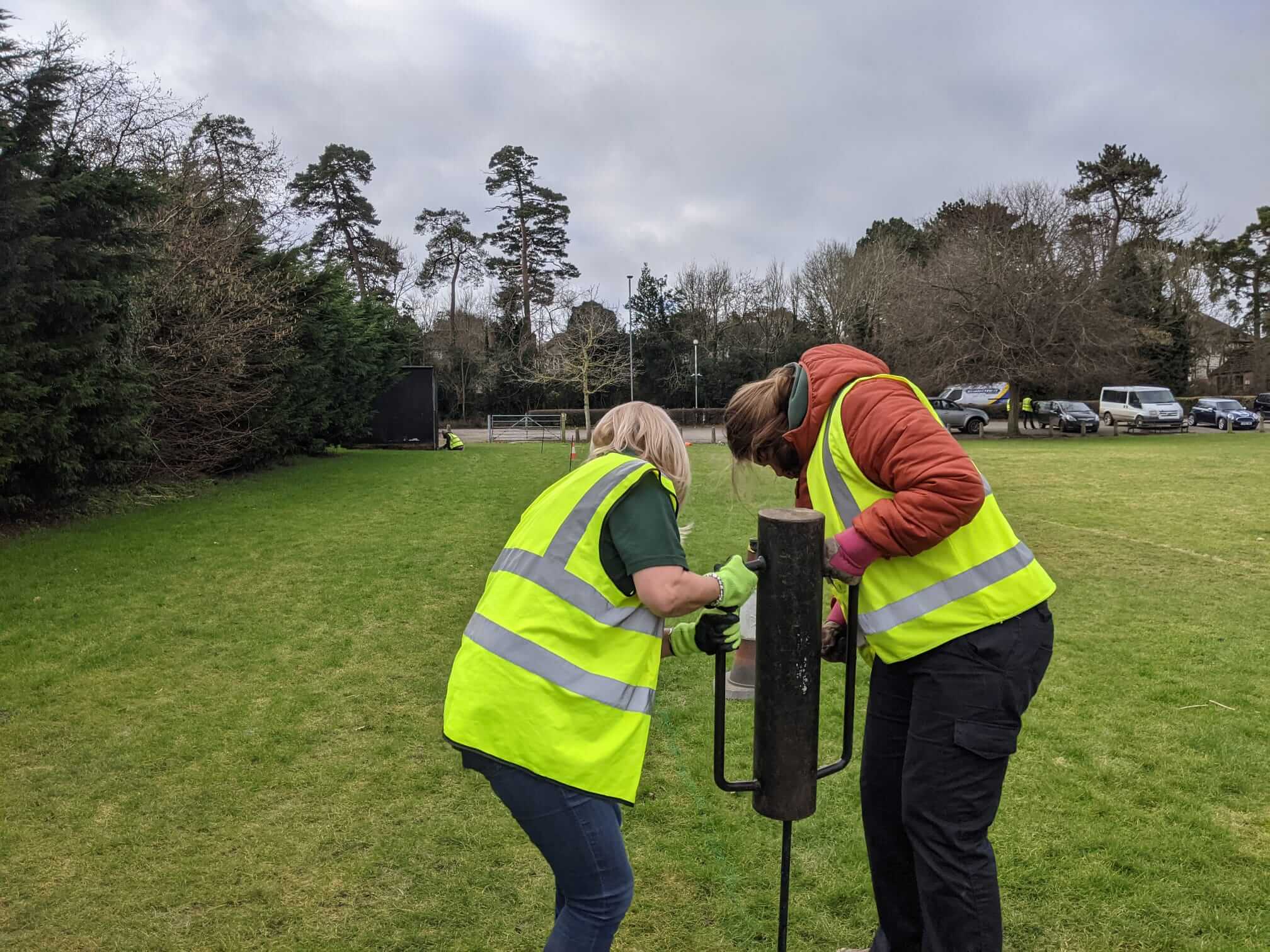 Lewis, Noreen & Becca helping with the Bovingdon contract, painting the bench and edging the path.