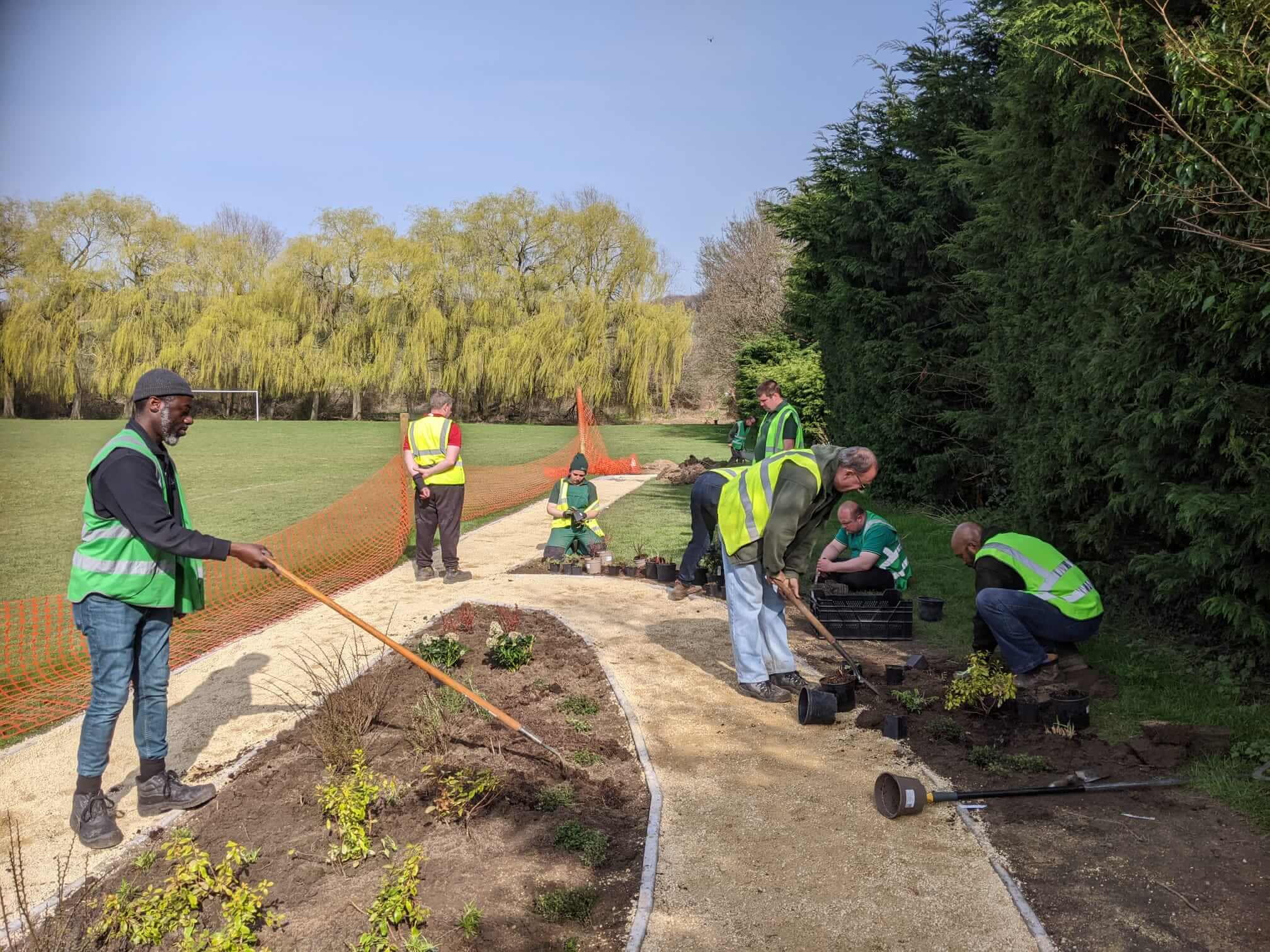 A group worked on an outside contract in Berkhamsted carrying out bed maintenance including weeding, pruning and edging – Noreen, Simon & Annette.