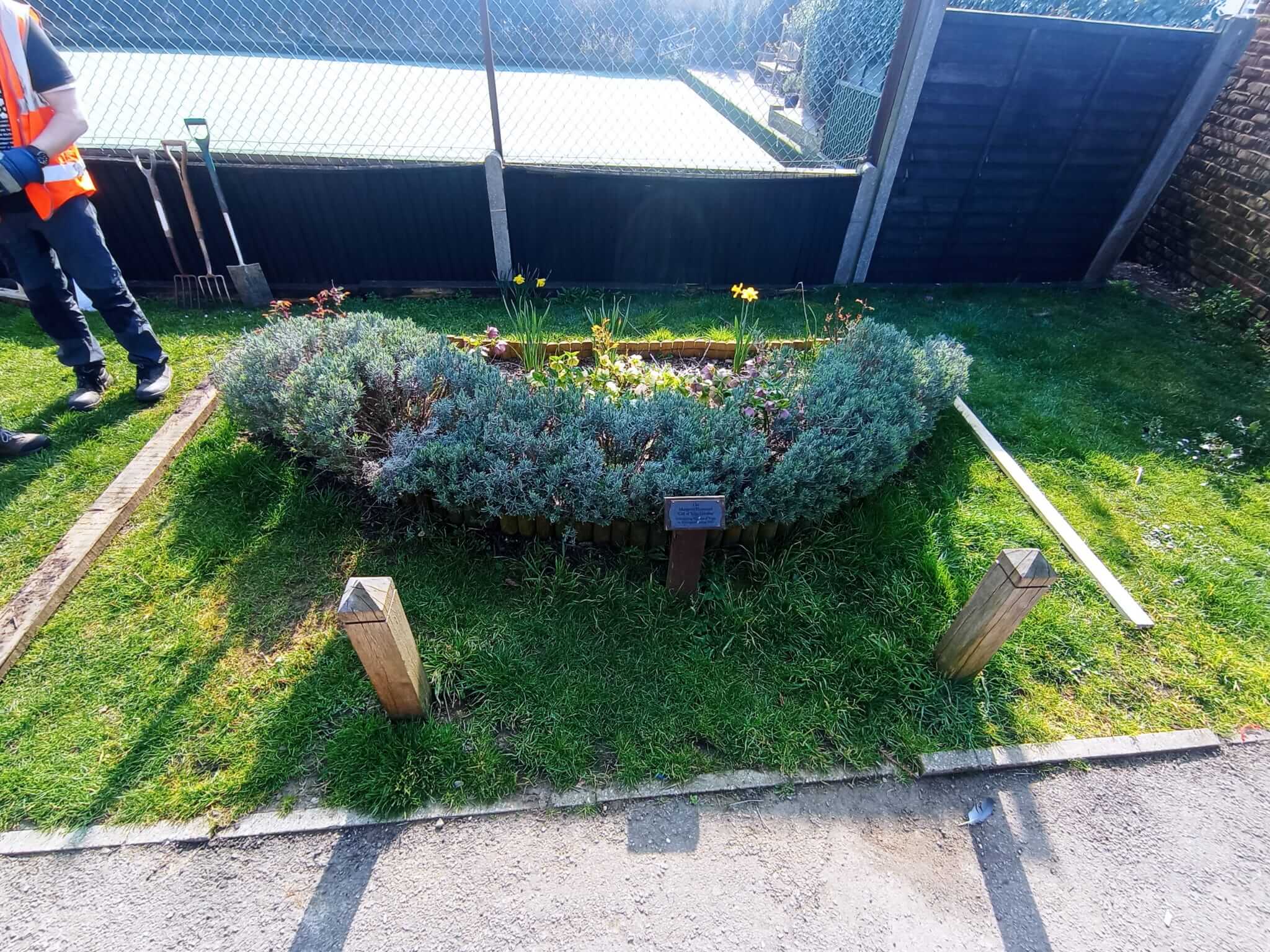 Bovingdon Parish Council wanted the flower bed outside the Memorial Hall to be extended so the team from the Activity Centre got to it this week. They removed the lavender and wooden trellis, which will be re-used for the new pathway as a planting border whilst the lavender will be planted in the orchard.
