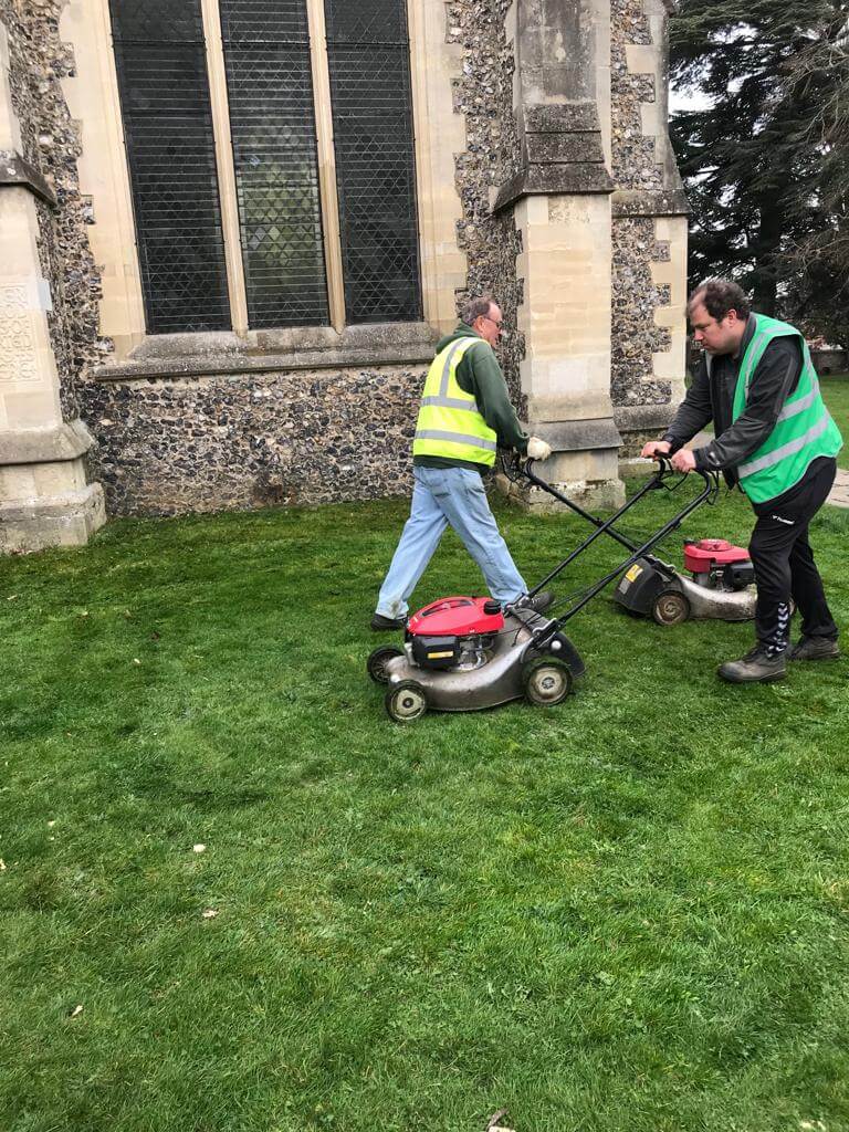 Helping out at St. Peters Church were Ellie, Simon, Michael, Ian & Harry, mowing and strimming in Berkhamsted.