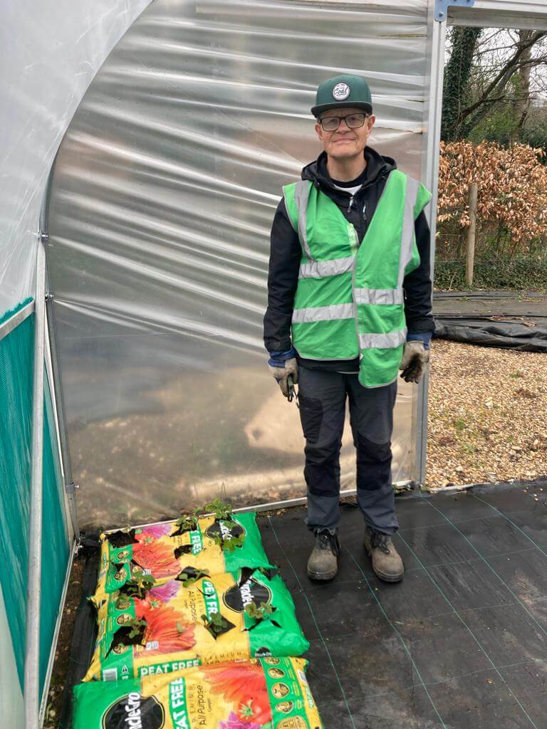 Planting strawberries in the poly tunnel.
