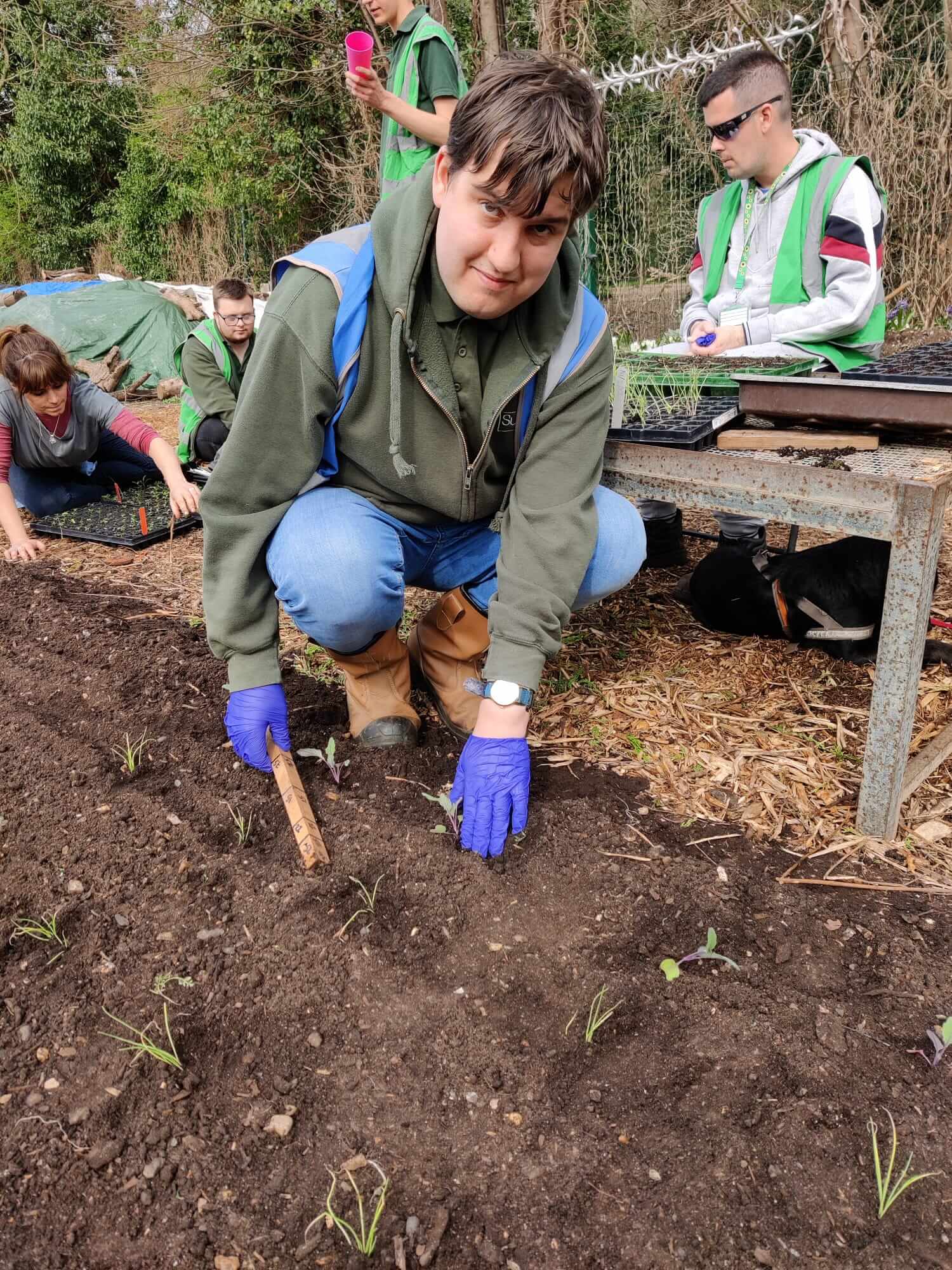 Suru, Tim, Michael T & Michael H replanting lavender from the recent Bovingdon work.