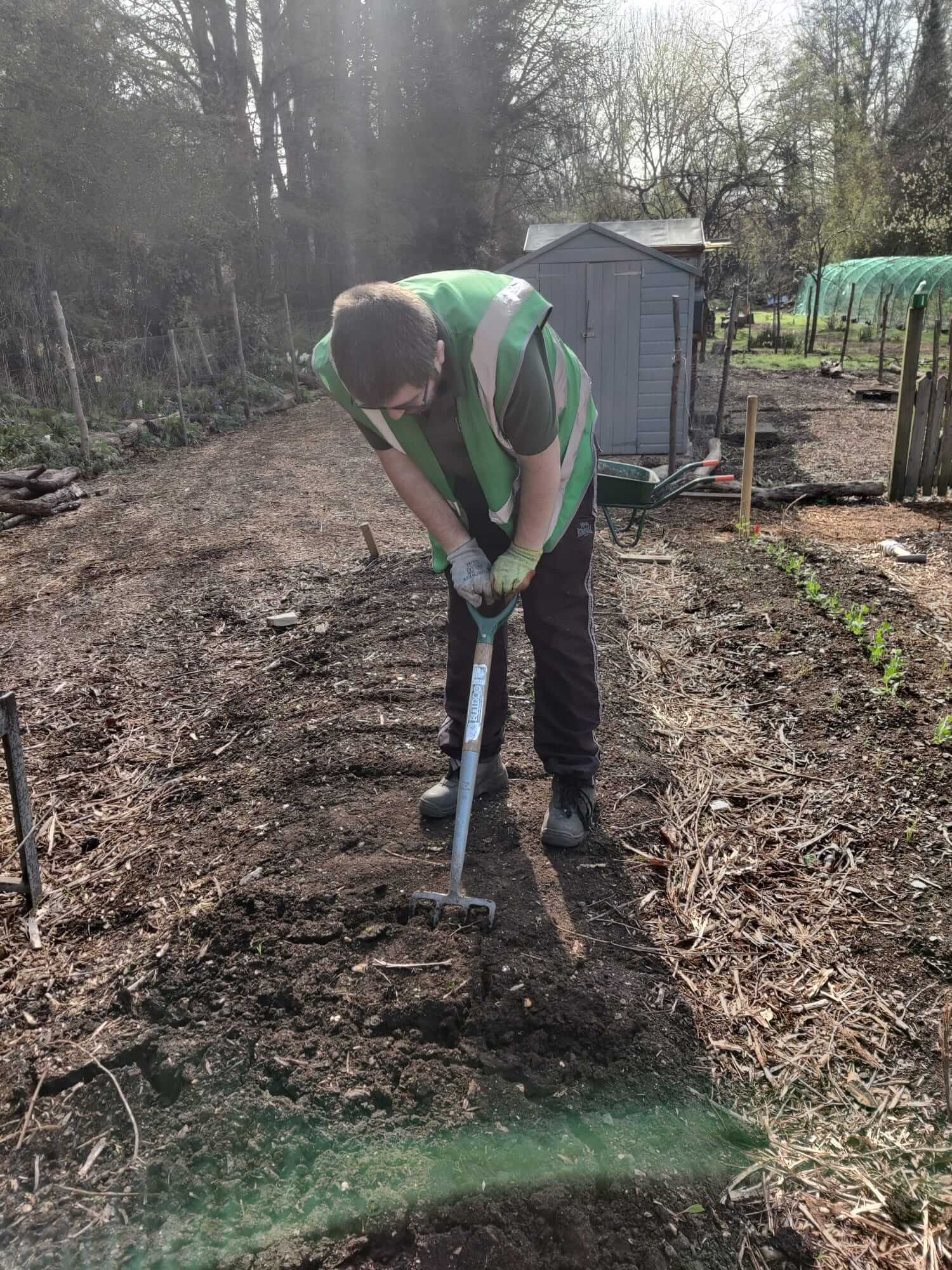 Calum mowing on the outside contract at the Chipperfield allotments.